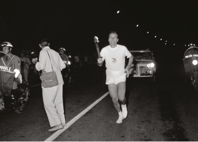 Following a short halt in Castelgandolfo, the relay resumed its race to arrive in Rome at dusk. Arriving on the Campidoglio, the last torch bearer saluted the crowd by raising the Torch and immediately after, the tripod was lit and the Flame kept on burning until the next day.